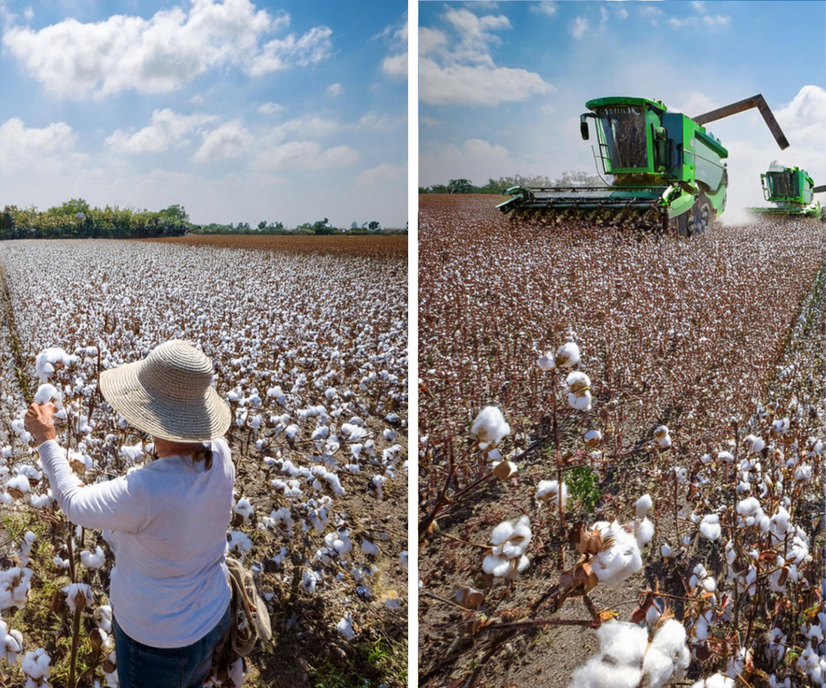 Organic cotton is handpicked, without the use of machinery, chemicals, or defoliants. Handpicking reduces waste in the farming process and is totally safe for workers.