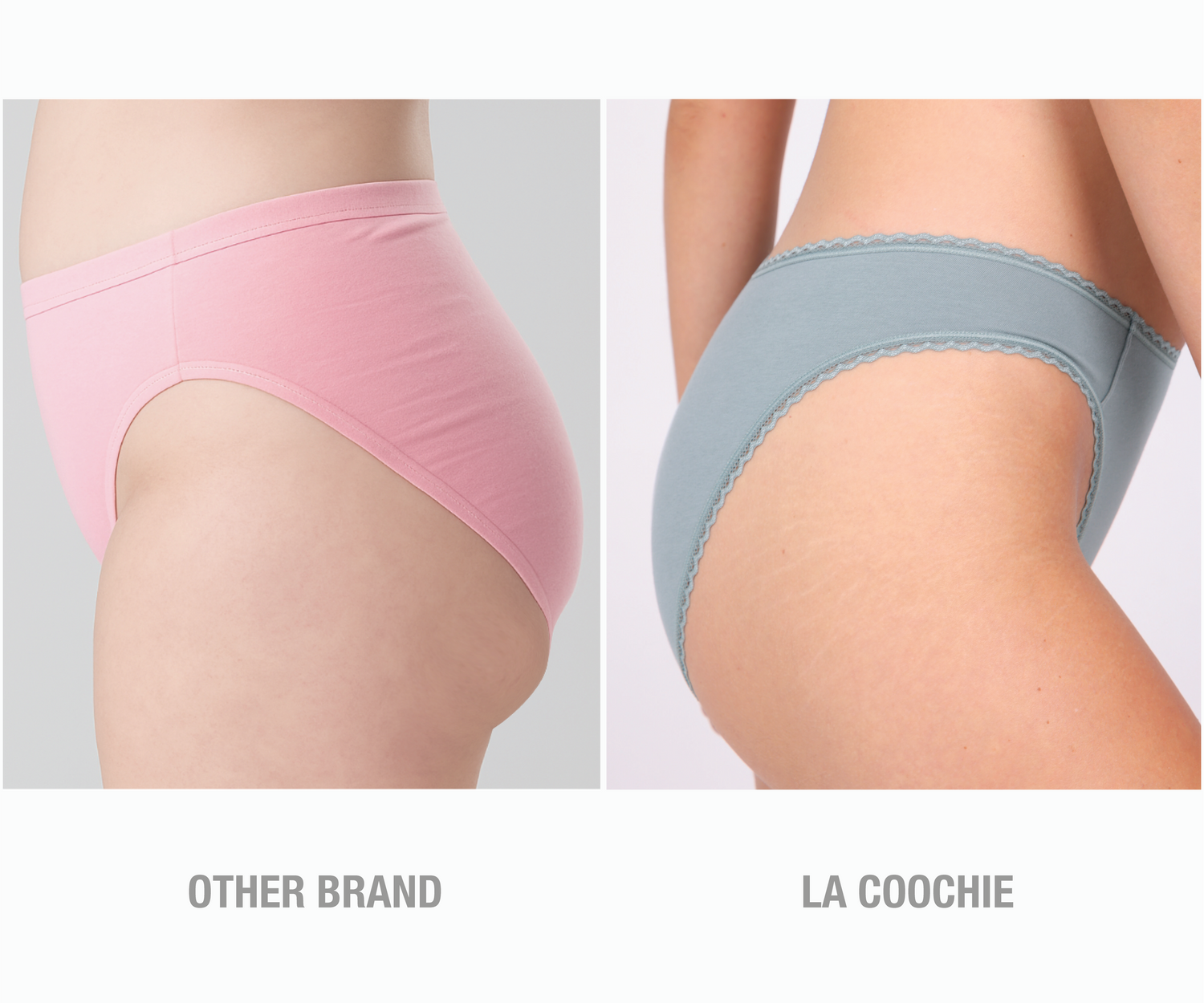 With just 5% elastane, we can skip bulky elastic bands at the waistband and leg openings. That means no more “double-butt,” panty lines or pinching. Instead, La Coochie finishes the edges of the underwear with OEKO-TEX certified, non-toxic lace trim - giving you a smooth, flat finish that feels comfortable and looks seamless under clothes.